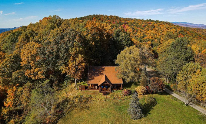 25 minutes' drive (16 miles) to downtown Asheville, our secluded cottage on Bearwallow Mountain has breathtaking views of Blue Ridge Mountains from spacious front porch. Newly upgraded kitchen and bathrooms. Right-off-the-property, easy-access hiking trails to breath-taking views.on the top of the Bearwallow mountainside; just a short drive to just about everything. It is VERY easy to access the home, via only paved roads right up to Bearwallow Mountain Road, which is gravel, but used by all vehicles. The home affords year round access, does NOT require 4-wheel drive except in Winter.