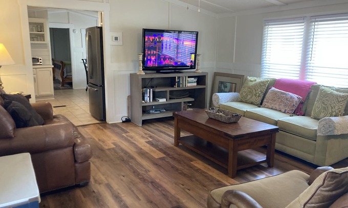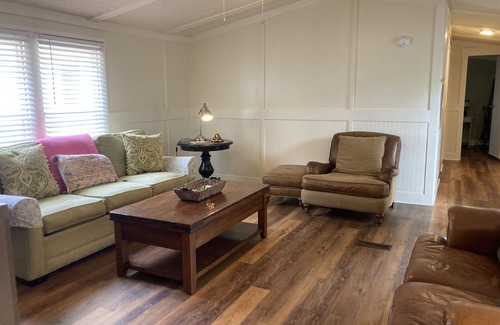 This newly renovated mobile home is centrally located in Beaufort, close to beaches and is less than 5 minutes drive to Parris Island, MCAS Air Station and beautiful Historic Downtown Beaufort. The home has all new flooring, trim, paint, tile, bathrooms and new appliances. Washer/dryer and outdoor grill also on site. Three bedrooms/two baths with pullout sofa bed in living room. Sleeps 8.