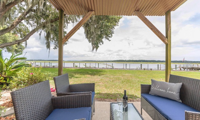 Experience Beaufort's Battery Creek from this recently-renovated Waterfront 1st-floor 1 bedroom / 1 bathroom end-unit condo in a gated community in Beautiful Beaufort South Carolina. Fully stocked kitchen, laundry room, comfy Queen bed, pull-out sofa, patio space & more! Close to Downtown Port Royal, Beaufort, Bluffton and Hilton Head Island! Also visit Charleston and Savannah! Looking for a getaway? Or headed to Beaufort for a Marine Corps Graduation Ceremony at Parris Island? This is it!