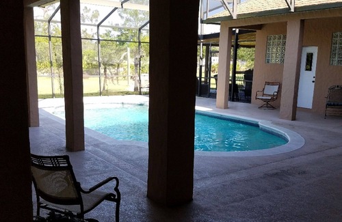 Sitting on 6 acres the In-Law Suite French Doors open to Pool area and outside fire pit lounge area a great place to unwind in the peaceful beauty of this home. The non-smoking apartment is 975 sq feet and has Queen Size bed off private bathroom. Wifi and cable, private laundry and full amenity kitchen allows you to just drop off your bags and head out to what East Orlando offers.