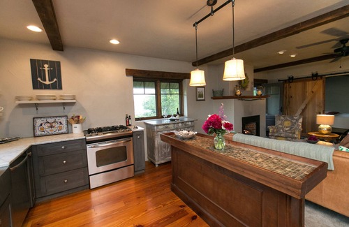 This property boasts exceptional amenities designed for both comfort and elegance. The beautifully constructed cottage features two queen-sized bedrooms, each with its own sink and vanity, ensuring privacy and convenience. Enjoy a spacious living area complete with a ventless gas fireplace and high-speed internet, perfect for relaxation after a long day of celebrations. The fully-equipped kitchen, fitted with modern appliances and Carrara marble countertops, is perfect for preparing meals or enjoying intimate dinners. Outside, gather around the stone fire pit or take in the stunning river views while unwinding in Adirondack chairs under a blanket of stars, creating the perfect atmosphere for heartfelt moments.