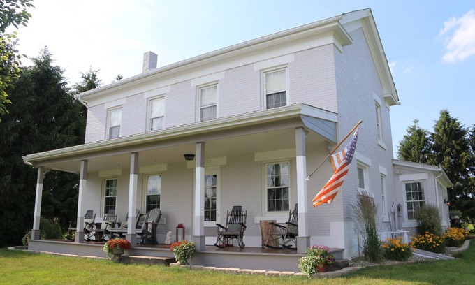 Unique 1870 brick farm house has been completely restored and features three bedrooms, two full baths, a fully equipped kitchen, dining & living rooms, enclosed sun porch, central air and wifi. House sits beautifully on 35 acre historic farm with vast scenic views. Enjoy this relaxing getaway with close proximity to Louisville, Canton (close to Hall of Fame and Airport), Alliance and Amish county.