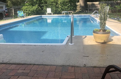 Lush tropical feel in backyard with banana trees and outdoor pool to enjoy with your family and friends during the summer months. Parking inside fenced area. Screen porch with seating and tv as well as a dining table to enjoy warm evenings. 5 minute drive to downtown Petersburg or Fort Lee and surrounding battlefields. 30 minute drive to Richmond. Conveniently located off I-95 and I-85.