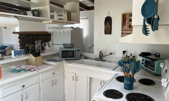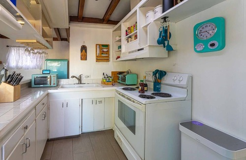 The house is entirely remodeled, featuring unique modern touches, all appliances give you a retro feel. The unit comes with its own washer, dryer and an amazing sexy beautiful 1930's clawfoot outdoor soaking tub (cold and hot water) under the stars and all the privacy you could want.