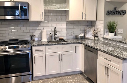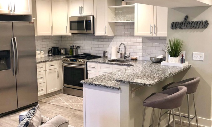 Newly Renovated & Modern Style Apartment includes everything you will need. Enjoy the prime location, situated between Mt. Vernon & NoMA, you will surely enjoy all that the area has to offer. Come and make your home just a short walk to Metro, Chinatown, City Center, Union Station, Downtown restaurants, bars, and grocery stores. FEATURES:- Fully Renovated - New Stacked Full W/D- Recessed lighting throughout- Nest Thermostat - Nest Doorbell- Yale Smart Lock (can be controlled through an app)- Kitchen Bar w/ 2 Stools- Kitchen with Stainless Steel Appliances and White Cabinets with modern handle bars, and modern retractable faucet- Granite Countertops- Modern Tile throughout- The living room includes a pull-out sofa, as well as a futon. The bedroom has a built in Vanity/Desk area. This apartment can accommodate up to 5-6 guests.