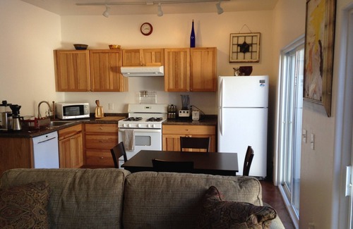 Literally in the mountains on the edge of Albuquerque, this cozy fully furnished 1 bedroom is an attached apartment with its own private garage and patio. Sandia Mountain hiking trails start right out the back door, while still being within 20 minutes of downtown Albuquerque. Our nearest neighbors are 500 feet away and all around us are stunning vistas of the city and incredible views of the mountains. If you love being in the wilderness, this is the most secluded place you will find on the west side of the mountain. And for our summer guests, escape the heat in the higher altitude. Please note: For our winter guests, from December 15 through February 28 I require 4 wheel or all wheel drive vehicles to be a guest. Exceptions will be made in warmer winter weather.