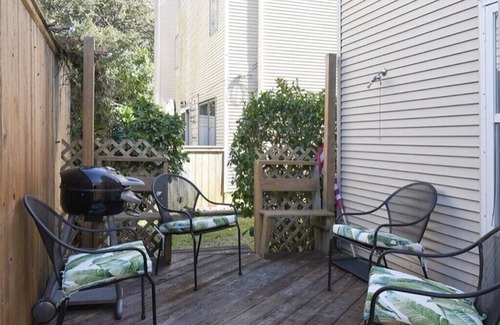 - Back deck is private with electric grill. Decks are large and have like new furniture, shower, storage shed with 4 bikes, 4 beach chairs, and umbrella, sand toys, 2 beach carts for 1 block away access to widest beach on North end and 1/2 block to entrance of Park.