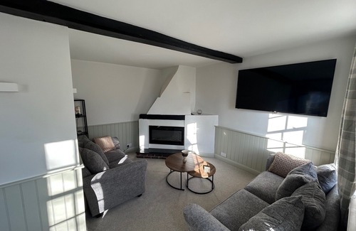 Living room with two comfy sofas and beanbags to relax and enjoy your evening. Electric fire to create a cosy evening curled up relaxing or sat with a glass of wine.