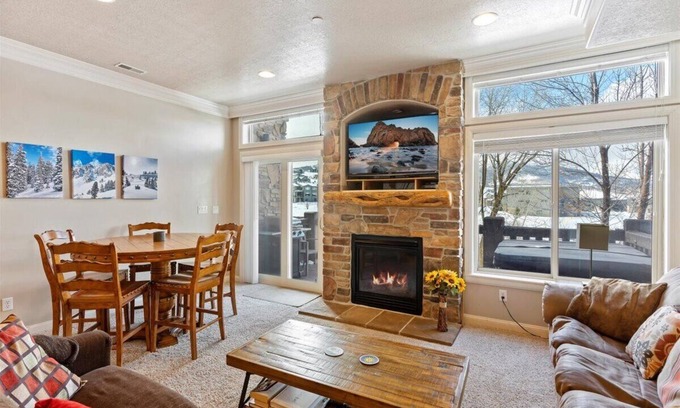 Beautiful 2 bedroom Huntsville, Utah condo. Private hot tub. 10 minutes from world-class snow at Snowbasin Ski Resort. Ski, snowboard, cross country ski. Walking distance to the beaches of Pineview Reservoir (via Anderson Cove Campground). Boat, paddleboard, swim, or just relax on the beach. This Ogden Valley condo is the perfect vacation rental.