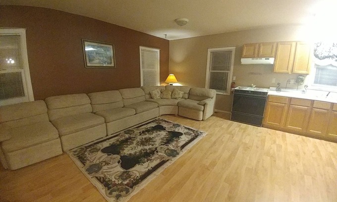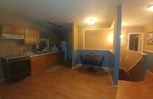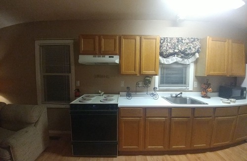 Two large bedrooms, fully shared kitchen, dining area, living rm and bathroom. Perfect for family members that may need to travel to and from McLaren Trauma Center Hospital or Select Specialty Hospitals. Alsi nice for rotating medical personnel. Close to Selfridge Air Base & downtown Mount Clemens festuvities. This is a quiet, working class neighborhood a few blocks from most needed amenities. You can either rent the entire apartment or just a room in the upper Loft on the second floor. There is a stove & full size fridge. This is a shared multi unit home so we just ask that everyone has quiet enjoyment and that there are no parties or additional guests that are not registered here as guests.