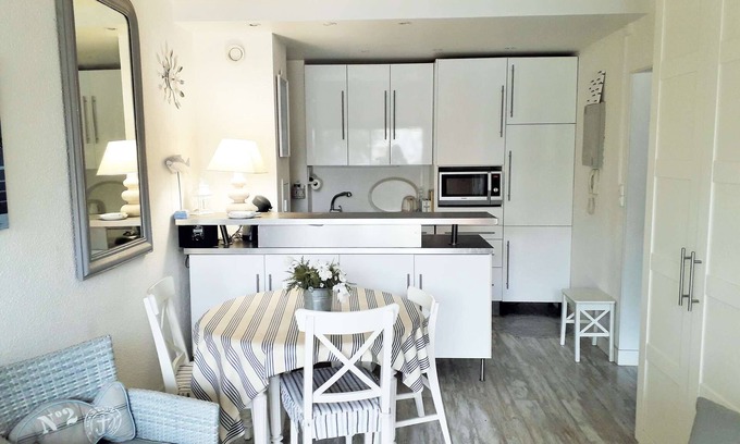 Beautiful 2 rooms Moulleau center with parking is located in Le Moulleau. Beautiful 2 rooms Moulleau center with parking provides accommodation, featuring Kitchen, Parking, View, among other amenities. This Apartment features Kitchen, Parking, View, to make your stay a comfortable one.