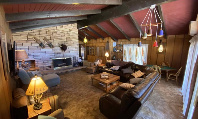 Step into the 1960's in our beautiful 2 story cabin short hop away from Mountain High Resort. Large mountain cabin with plenty of space. Rec room for kids to hang out in. Private and tucked away. 4 mile drive to Mountain High Ski Resort. Perfect multi-family get away! Large living room with beautiful fireplace to sit and cozy up to. Kitchen is stocked with all cooking and eating essentials. Enjoy hiking, walking through the quaint downtown area, zip lining or go skiing at Mountain High.