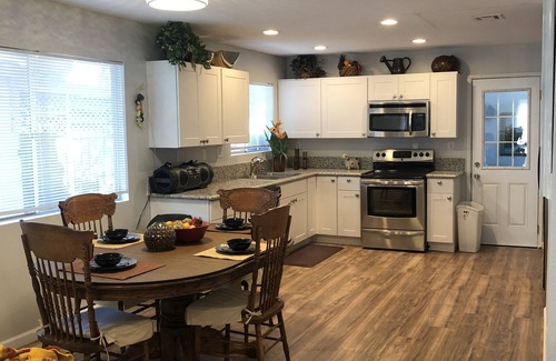 Beautiful modern home two bedroom, one bath, with extra bonus room. Corner lot. Everything is brand new and renovated. Fully furnished 1 story home. Minutes away from the downtown, main strip and the outlet mall ... Just 2 blocks away from the i-15 freeway. Located 1 block away the medical field. Beautiful fruit trees on the side the home. Quiet neighborhood. Big private backyard. granite counter tops with stainless steal appliances.