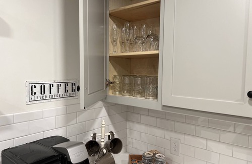 A perfect blend of old and new with gorgeous refinished, original hardwood floors, and beautiful custom cabinetry. You will feel right at home with the farmhouse decor, genuine antiques, and fresh linens. The kitchen is a dream, filled with everything you need, including and old oak table and beautiful brown stoneware. Enclosed back porch is the coat drop area, but with a desk, chair, and lamp also serves as the perfect spot to get a little work done!