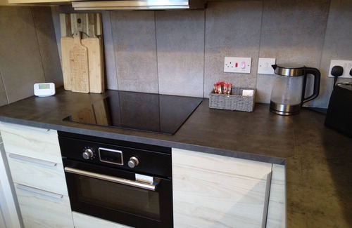 The kitchen has a fridge, a hob, an oven, a kettle, a freezer and a microwave.