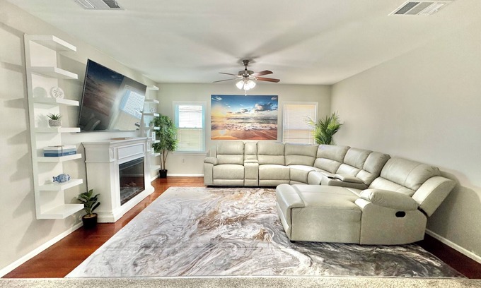 The open layout and thoughtful touches throughout the home make it easy to unwind and enjoy quality time together. Brew your morning coffee and sip it out on the deck, gather for meals around the table, or relax after a beach day with your favorite shows and snacks.