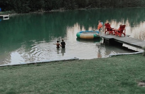 Enjoy a weekend or week away at our cozy family cottage, located on a private lake. The cottage has everything you need, complete with a boat house, and fishing boat + a dock and wade in shoreline that your family will love.