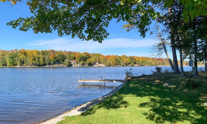 - Lakefront Cabin w pristine shoreline, private dock & fire pit