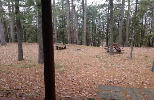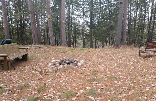 This river front house is on 5 wooded acres, has a covered porch facing the river to sit and enjoy the peace and quiet and the sounds of nature. It has a fire pit , gas grill, use of 2 kayaks. the are 2 cushions and extra bedding for more sleeping accommodations.