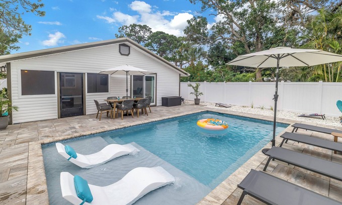 Discover this charming Sarasota Sunshine Pool House, 10 min from Siesta Key Beach and 5 min from downtown Sarasota’s restaurants and bars. Enjoy our upcoming pool and spa (coming September 2024)!!