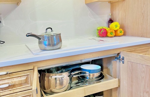The kitchen itself is a chef's delight, featuring sleek countertops, top-of-the-line appliances, and all the utensils and cookware you may need. Whether you're whipping up a quick breakfast or preparing a gourmet feast, you'll find everything at your fingertips.