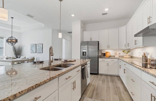 The incredible kitchen will make the chef in your family proud to prepare any meal, with plenty of counter space and room to maneuver, while still being part of the rest of the room.