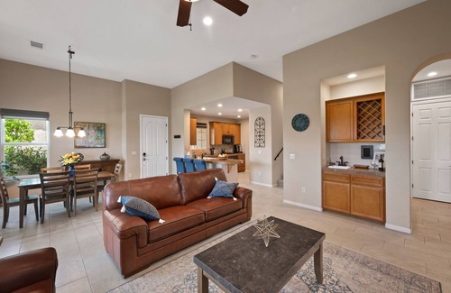 This exquisite La Quinta home is equipped with top-notch amenities, including a private pool, hot tub, and fire pit, ensuring that you and your loved ones can unwind in style. The open floor plan creates a warm and inviting atmosphere, while the newly furnished interiors provide a stylish yet cozy ambiance. Each of the three spacious bedrooms is designed for relaxation, offering ample privacy for family and friends. Whether you're hosting pre-wedding festivities or enjoying a post-wedding retreat, you'll find everything you need for a seamless stay here.