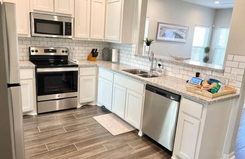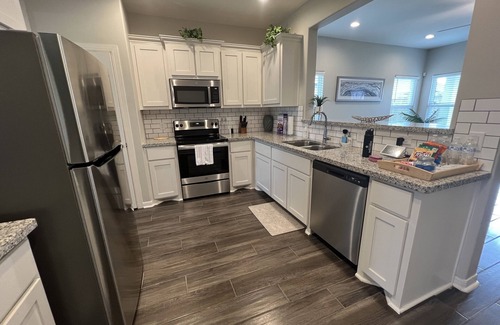 Outfitted with Wifi for all your streaming needs and a work space to catch up on emails or social media. You'll have full access to several smart TVs, washer/dryer, two car garage, portable charcoal grill, and other surprise amenities to make you feel at home.