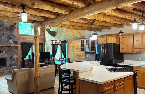 Welcome to The Lodge Retreat, a spacious and secluded 3600 sq ft log cabin lodge perfect for your next group getaway! You will have the entire home (minus basement,garage and 3 closets) all to yourselves! Nestled on 40 private acres, this beautifully designed retreat offers a blend of rustic charm and modern amenities, ensuring a comfortable and memorable stay.