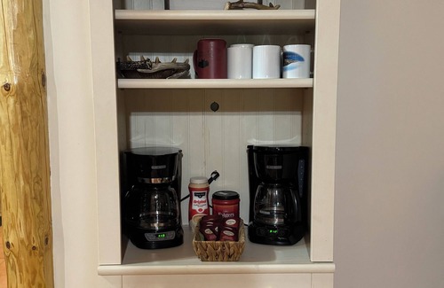 Fully Equipped Kitchen: Prepare delicious meals with ease! Our kitchen boasts a dishwasher, two ovens, an air fryer, crockpot, serving essentials, mixer, and a coffee pot (with coffee and creamer provided). Multiple spices. A high chair is also available. Paper towel, dish detergent are also provided.