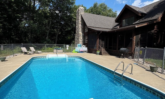 Beautiful 4-BD 9 bed house with heated in-ground pool, and fiber internet is located in Barryton. Beautiful 4-BD 9 bed house with heated in-ground pool, and fiber internet provides accommodation, featuring Fireplace/Heating, Child Friendly, Laundry, among other amenities. This House features Fireplace/Heating, Child Friendly, Laundry, to make your stay a comfortable one.