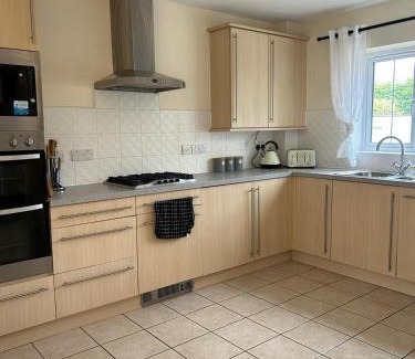 Beautiful 4-Bedroom Home for Groups & Families offers accommodations in Loughborough, 11 miles from Belgrave Road and 12 miles from Leicester Train Station. Both free Wifi and parking on-site are accessible at the apartment free of charge. De Montfort University is 12 miles away and Donington Park is 12 miles from the apartment. This apartment includes 4 bedrooms, a living room and a flat-screen TV, an equipped kitchen with a dining area, and 3 bathrooms with a bath and a washing machine. Towels and bed linen are available in the apartment. The accommodation is non-smoking. University of Leicester is 13 miles from Beautiful 4-Bedroom Home for Groups & Families, while Trent Bridge Cricket Ground is 16 miles from the property. East Midlands Airport is 10 miles away.