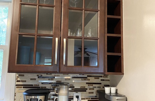 A game room awaits you! Enjoy the pool table as well as lots of board and card games. Amenities include wifi, multiple LARGE flat screen smart TVs, a washer and dryer, a large selection of DVDs, a corn hole set, a fire pit area, a gas grill, portable crib, lots of board games, and portable high-chair. Enjoy dinner on the large deck outside the dining area. The well-stocked kitchen includes basic cooking spices, a slow-drip coffee maker as well as a Keurig, and all the cookware that will have your family staying in for the evening. A second kitchen is available in the detached in-law suite. Three refrigerators on the property make it easy to keep all your food and drinks chilled and ready. Charge your phone easily with bedside table lamps that include charging ports or plugs.