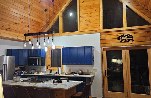 Step into our enchanting retreat featuring a large open great room and kitchen with views from every window. Our home is perfect for family gatherings, large meals, game nights and movie nights. We also have a large family/game room downstairs with ping pong, games and movies. Our log cabin includes 2 king bedrooms one with attached bathroom, and 3 queen beds, two with attached baths. Total of 3 1/2 bathrooms with showers, bathtubs, bidet, and hair dryers equipped to meet your needs. An additional space off the downstairs king bedroom with 2 twin beds provides extra family space. Experience a fantastic stay at our phenomenal property.