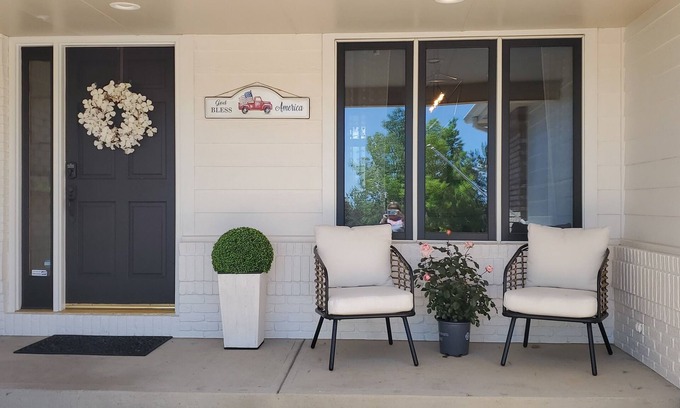 Ranch home with 3 bedrooms on main level and 2 large bedrooms in the lower level. Sleeps 12 guests comfortably. Eat in kitchen and formal dining room. Traditional wood firepit for evening marshmallow roasting. Gas firepit on back patio for cool morning coffee. Property has a horse on site that property owners need to tend to, using a separate driveway as to not interrupt guests. In addition, we have farm fresh eggs on site for breakfast daily.