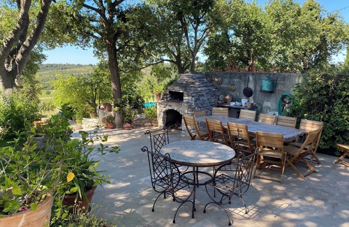 Large terrace in front of the living room and the kitchen, with pizza oven / barbecue.