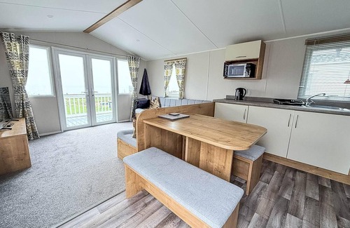 2 bed caravan, sleeps 6. With full sea views, wrap-around decking, free WiFi, double glazing & central heating. Diamond rated.
