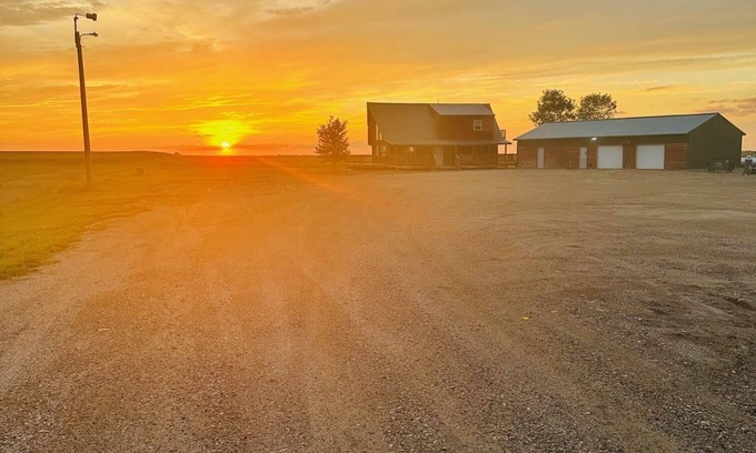 Directly off Hwy 281, 6 miles south of Aberdeen - Impeccable morning views through south facing floor to ceiling windows. Seating for 16, peninsula / island / living room - hosting options for a variety of group styles (family reunions, traveling families following sport events & other gatherings). Home boasts a spaciously open concept. As an added bonus there is a large gaming area that hosts a pool table, foosball table & large screen TV with streaming capabilities in a detached double plus garage space. Nature's view is something that has to be experienced to be appreciated! For those who enjoy shooting - the Aberdeen Gun Club is 1/4mi & Sportsman Club is only 1/2mi north of property.