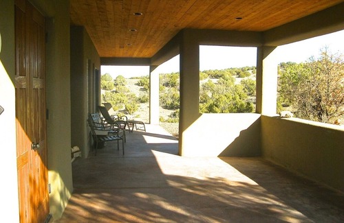 Serenity abounds at Casa Bonita, where it is easy to see why this country had such a profound impact on Georgia O'Keeffe. Light and open, this modern adobe rests on ten acres overlooking Abiquiu Lake towards Ghost Ranch, with gorgeous views in all directions. Picture windows throughout the living area allow you to appreciate the vistas from the comfort of the well-appointed interior. The covered portales (covered porches) are ideal for enjoying the tranquility of the environment. Admire the view of the Pedernal from the portale off of the master suite, or take in the iconic landscape of Ghost Ranch while you grill on the portale off of the kitchen.