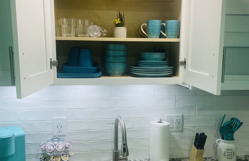 Be sure to check out the kitchenette, stocked with a coffee maker, a microwave, and cookware. Connect to the WiFi, or get cozy in front of the TV. Bathroom amenities include a hair dryer, towels, and toilet paper. And thanks to the washer and dryer, you'll even be able to travel light.