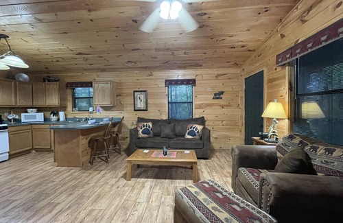 Are you looking for a hideaway in the mountains? The Bear Track Cabin is located in the rural Kiamichi Mountains in southeast Oklahoma. The view from this cabin includes beautiful sunsets, colorful fall foliage, and breathtaking mountain contours.