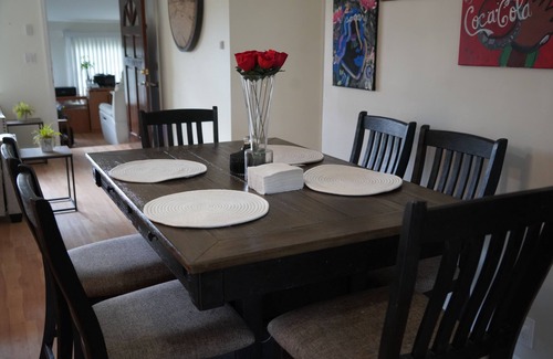 This is a beautiful 4 bedroom and 2 bath home with 1 bedroom and 1 bathroom dedicated to you and your guests. The other bedrooms and bathroom will not be available nor accessible. You will have the following: