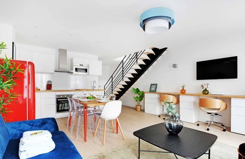 Checkmyguest offers this superb 101 m² flat, located in the 14th arrondissement of Paris, in the historic district of Montparnasse. With three levels, it offers three charming bedrooms equipped with modern amenities, providing the perfect setting to enhance your stay. Take advantage of this unique opportunity to admire the exceptional view from the Montparnasse Tower.