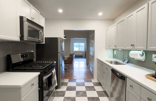 Kick back and relax in a complete two-bed/one-bath apartment with direct access to a private parking lot. Enjoy all the amenities for a comfortable stay, including washer/dryer, queen size beds, newly-renovated full kitchen, breakfast nook, desk, designated offstreet parking spaces, and keypad check-in on your own schedule.