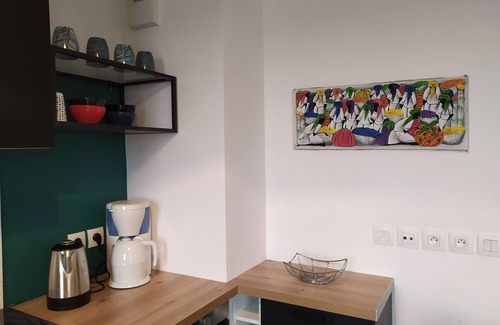 Open kitchen very well equipped: Oven, fridge, dishwasher, Tassimo coffee maker, kettle, toaster, filter coffee maker, television.