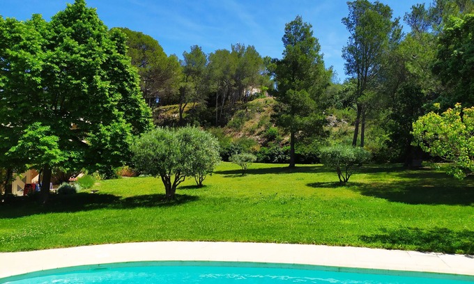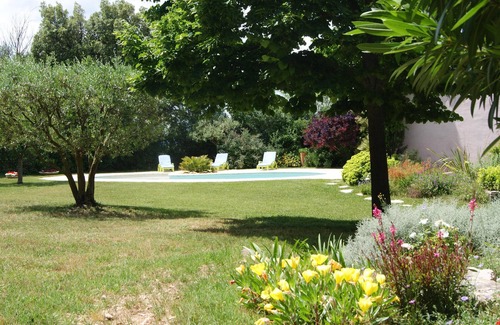 Large architect-designed villa of 160 m2 10 minutes from Avignon, not overlooked, with a beautiful shaded terrace overlooking a magnificent landscaped garden of 2800 m2 planted with pines and olive trees. Neat decoration, three bedrooms, all air-conditioned, each one on a terrace, towels and household linen provided. Billiards, wifi.