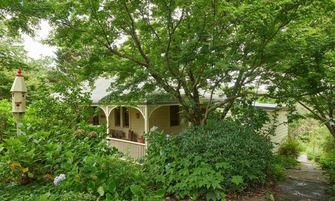 Located in the mid-mountains, Chiltern is located on an acre that backs on to the Blue Mountains National Park , with no adjoining properties on these boundary lines on the south or western boundary of the property, while the home to the east is owned by a family based in Sydney is rarely occupied. To the north is the street frontage, with a thick verge that is planted with two tall, dense garden beds that offer a substantial privacy screen from the road. This means guests will often enjoy a rare quiet not afforded by most guest houses. The home itself is architecturally renovated, with the original cottage encased in the new dwelling, baring witness to the layers of history and each owners sensitive touches. Guests are surrounded by the owner's art collection and the interior has been attentively considered after years of the owners living in the space. The cottage garden is award winning and sustainably designed, with a beautiful variety of continentals—that act as a firebreak— and natives closer to the bush. There is also a pond with a water feature home to a variety of frog species from Banjo Frogs to Peron's Tree Frogs, that also provides much needed hydration during bushfires to local bird life. It is birdscaped for the local birds and houses a wide variety of species from Honey Eaters, that occupy the low lying shrubbery, to the elusive Wonga Pigeons. While the cottage garden's charm is pleasant and calming for guests, the splendor of the bushland in the national park, viewable from the cottage and the garden, gives guests an expansive sense of nature's grandeur. Walks in Terrace Falls Valley's are only minutes away by car (also in walking distance) and guests can immerse themselves in a nature bath of spectacular old growth Eucalypts and Turpentine trees.