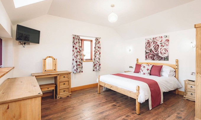 This luxurious self-catering accommodation boasts a range of top-notch amenities that ensure your stay is both comfortable and memorable. The open-plan living area is perfect for gathering with family and friends, featuring a large dining table, cozy log burner, and a hot tub for unwinding after a day filled with wedding festivities. Enjoy the privacy of your own courtyard and patio while taking advantage of high-quality furnishings designed to elevate your experience. The five-star standard throughout the property guarantees a level of comfort that will leave you and your guests feeling pampered.