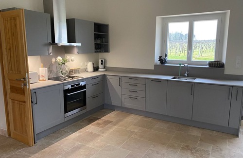 Maison de la Fontaine our a newly developed barn situated on Domaine de Beauregard vineyard. The estate has 136 acres of land and woodlands which 32 acres are vines. The vines are planted on the hillsides surround the property private winery. Within the grounds of the Vineyard is Maison de la Fontaine. A luxury barn conversion that can accommodate 10+ people, each bedroom is ensuite, heated pool, air conditioning, wonderful indoor and outdoor kitchen.