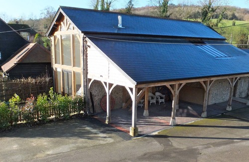 The recently converted 19th century barn nestles in the farm properties. It has a modern open planned feel with luxury interior design and facilities. You will receive a warm personal welcome here at the farm. We are happy to collect you from the station in the village which has regular trains to London's Waterloo and Victoria stations. We are a working smallholding. You may well be woken by George the cockerel or Prince the donkey, before feasting on a breakfast of eggs and bacon from our own pigs and chickens. The welcome pack provided is extensive and includes products from the farm, freshly baked bread and cakes as well as produce from local suppliers. We have lots of information on our web site, please search for The Flint Barn.